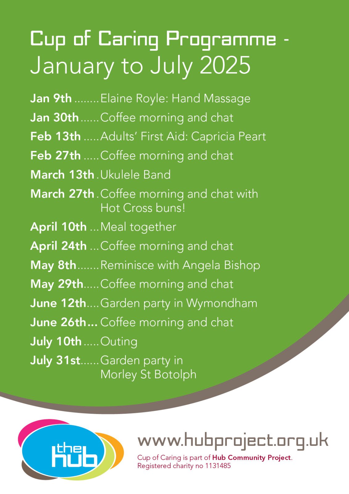 The group meets on the second and last Thursday of each month, 10.30am – 12noon at The Hub in Wymondham.